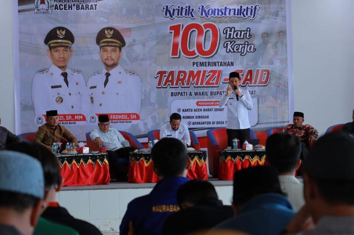 IJN – Meulaboh | Dalam upaya membangun pemerintahan yang transparan dan responsif, Bupati Aceh Barat, Tarmizi SP, MM bersama Wakil Bupati Said Fadheil menggelar kegiatan “Kritik Konstruktif 100 Hari Kerja” di Aula Teuku Umar Bappeda setempat, Kamis 29 Mei 2025