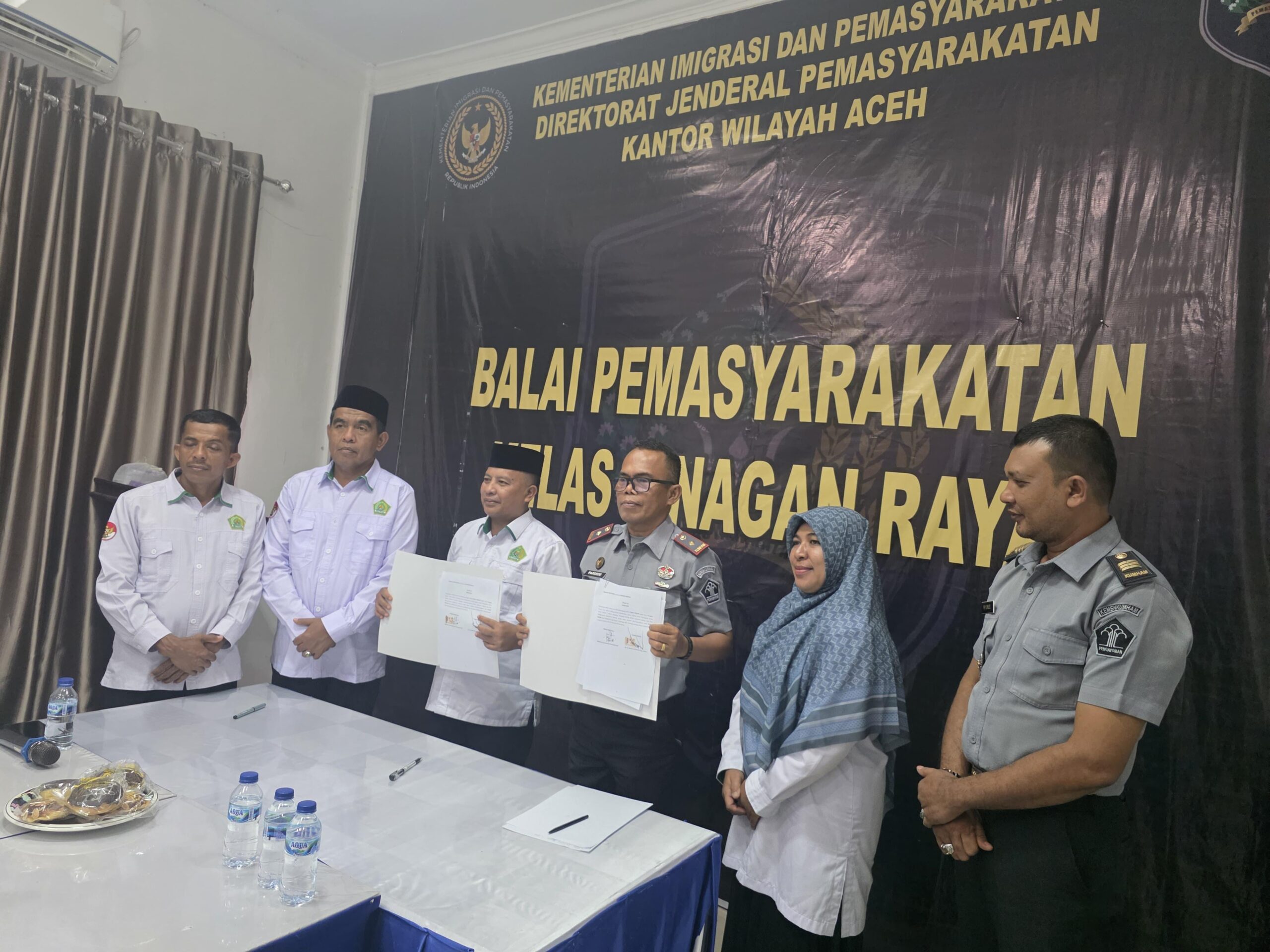 IJN – Banda Aceh | Balai Pemasyarakat (Bapas) Kelas II Nagan Raya melakukan Penandatangan Kerja sama (PKS) dengan Kementerian Agama (Kemenag), Kabupaten Nagan Raya, Provinsi Aceh, Senin 8 November 2025.