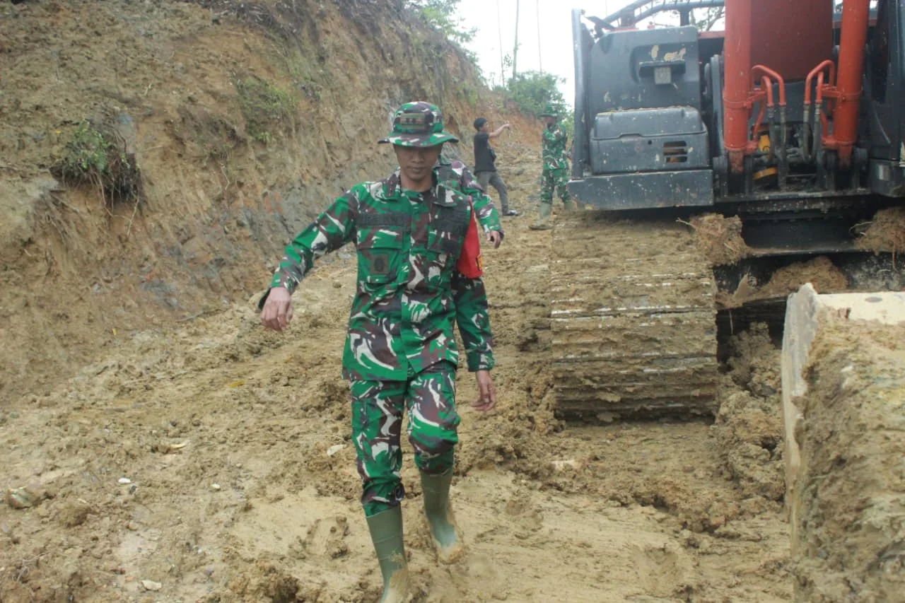 Nagan Raya | Suara alat berat berpadu dengan cangkul dan langkah sepatu loreng yang menyusuri jalan tanah di sebuah desa yang berada di Desa Ujong Blang Hingga Pante Ara, Kecamatan Beutong, Kabupaten Nagan Raya, Provinsi Aceh.