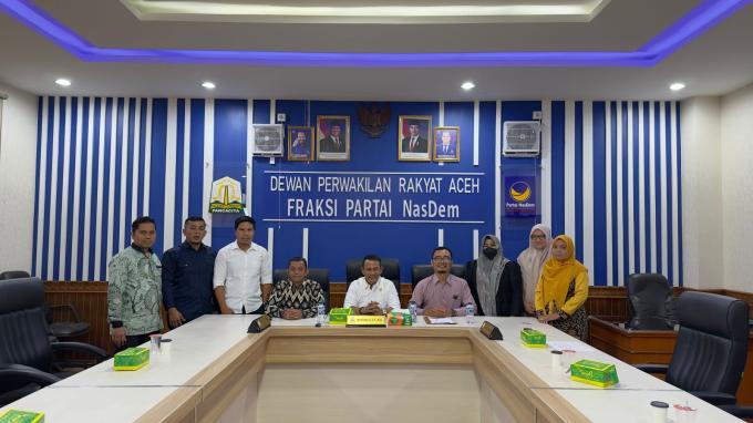 Kegiatan audiensi dan silaturahmi berlangsung diruang Fraksi NasDem DPRA dan diterima langsung oleh Ketua Fraksi, Nurchalis, S.P., M.Si, didampingi Tenaga Ahli Fraksi, Mulyadi Muhammad, S.E., M.Si. Senin 22 September 2025.