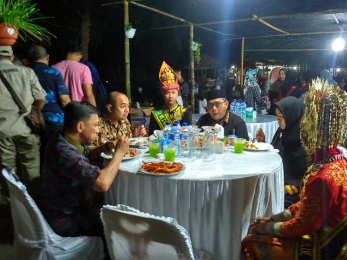 IJN – Simeulue | Tamu undangan pada pembukaan Kemah Wisata Simeulue dijamu makanan khas daerah setempat oleh panitia sesaat sebelum pembukaan acara, Minggu 14 Juli 2019 malam di Pantai Lantik, Kecamatan Teupah Barat, Simeulue.